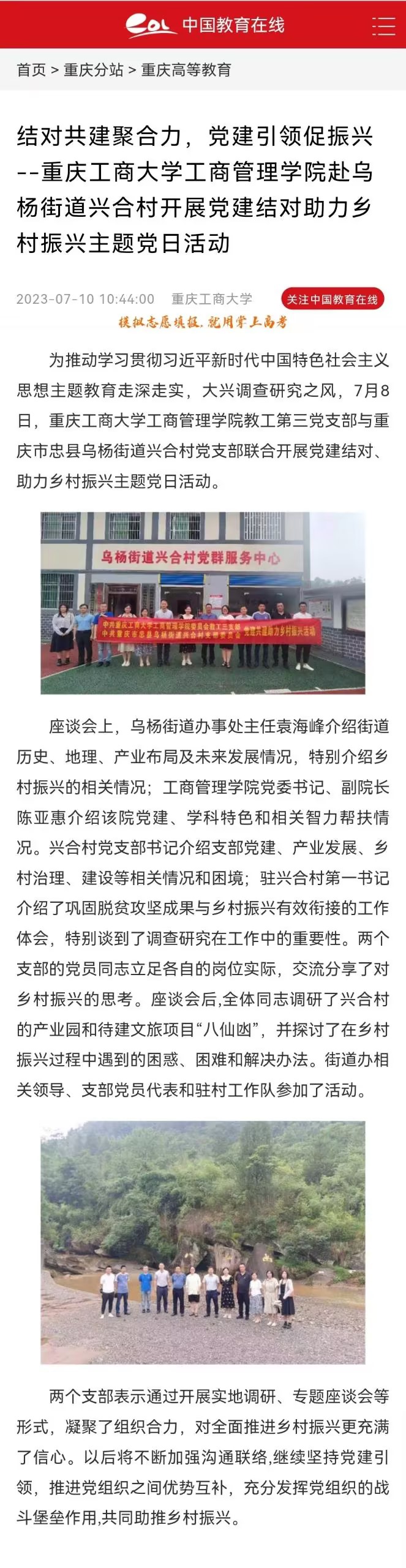 中国教育在线、环球时报道公司党建结对及助力乡村振兴主题党日活动