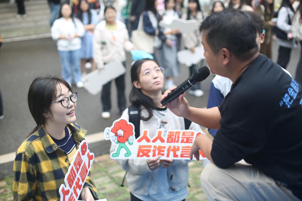 活动通过现场宣讲、网上答题、小游戏、互动答题、抽奖等环节,让师生对常见的诈骗套路有了更深的认识,进一步增强了师生的反诈意识,提升了师生识骗防骗能力。学院2021级酒店专业员工组成的志愿队伍参与了现场服务工作。