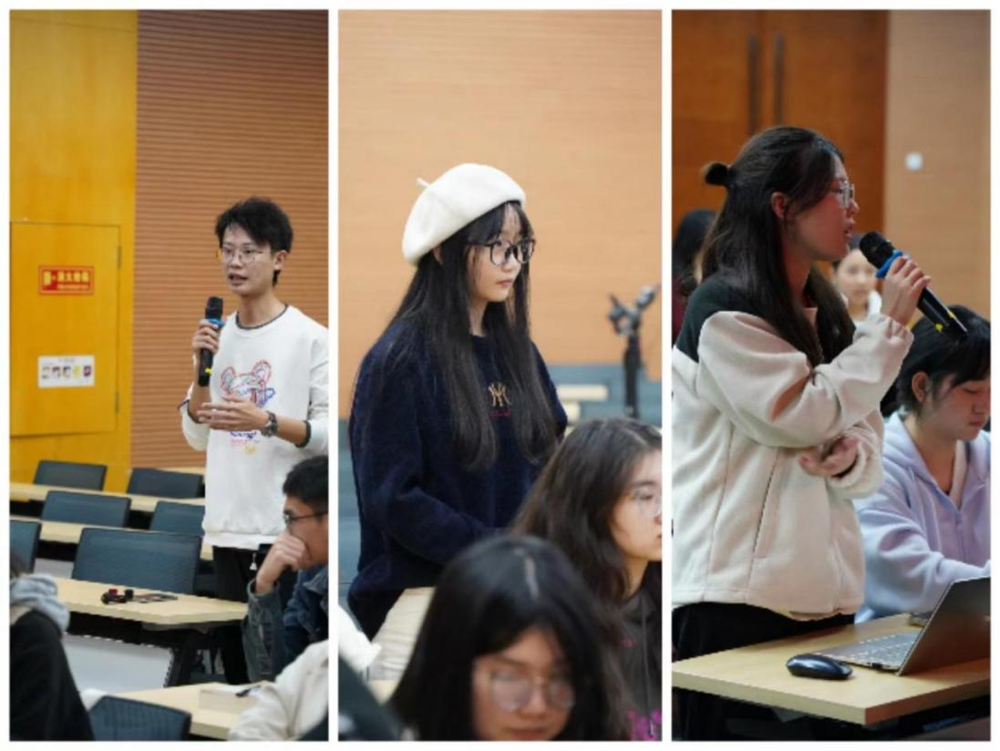 活动中,21级工商管理专业的周安宁、21级旅游管理专业的张之洋作为在学科竞赛中有突出表现的团队代表,分享了他们在大赛中的参赛经验。两位同学分别从比赛规则、赛道选择、评分标准、项目选定、团队组建、协作分工等方面将多次备战学科专业竞赛的经历和竞赛经验毫无保留地分享给了在座的各位同学,干货满满。互动交流中,参训同学争先恐后积极提问,团队代表耐心解答,现场氛围热烈。