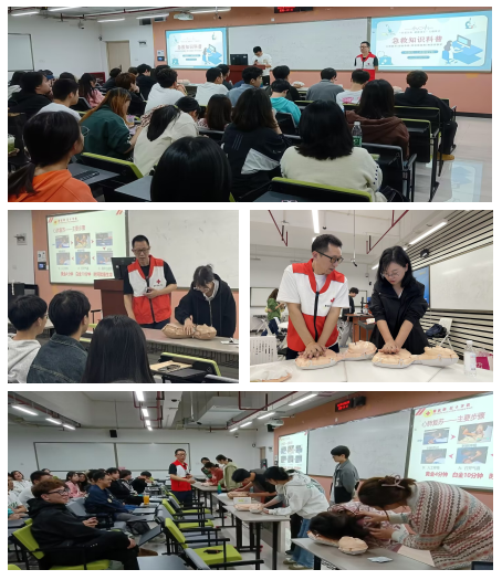 本次主题班会活动由重庆市红十字会急救团队培训师、后勤处校医院的徐忠诚医生主讲。徐医生生动有趣的专业讲解以及现场演练,使现场员工深入掌握了心肺复苏术、烧烫伤处理等急救知识与技巧,提升了他们应对突发状况的能力。主题活动得到了现场员工的广泛好评。其中21市营三班的杜莹同学表示,“这种主题班会形式特别新颖,互动性与实操性特别强。特别感谢学院举办了这次急救知识培训活动,最有收获是学习到了心肺复苏标准流程与正规动作。这是可以救命的稻草!”
