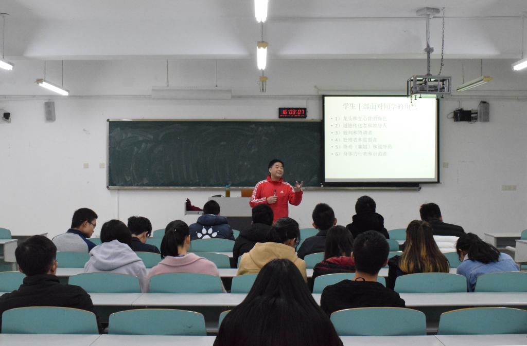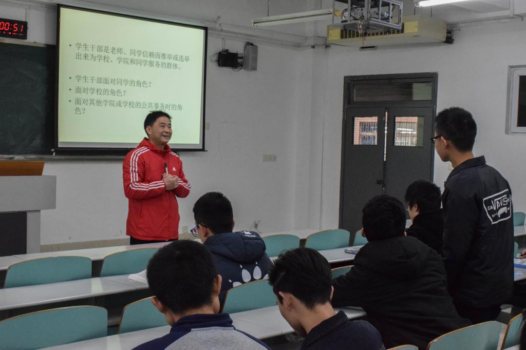 讲座上,唐仕军教授针对各个专业的不同提出“管理能解决什么问题”与在座的同学互动,进而引入此次讲座主题。随后,唐仕军教授向同学们分别介绍了在面对老师、同学以及其他学院或学校员工干部的不同角色。此间,员工干部黄敏发言道:“员工干部就是一个走在前面,起带头作用的角色。”紧接着唐仕军教授列举了员工干部选拔原则、以及对干部用人的几大心理误区进行了分析。此外,唐仕军教授还谈到了员工干部个体素质的含义、内容以及优秀员工干部所应具备的素质。