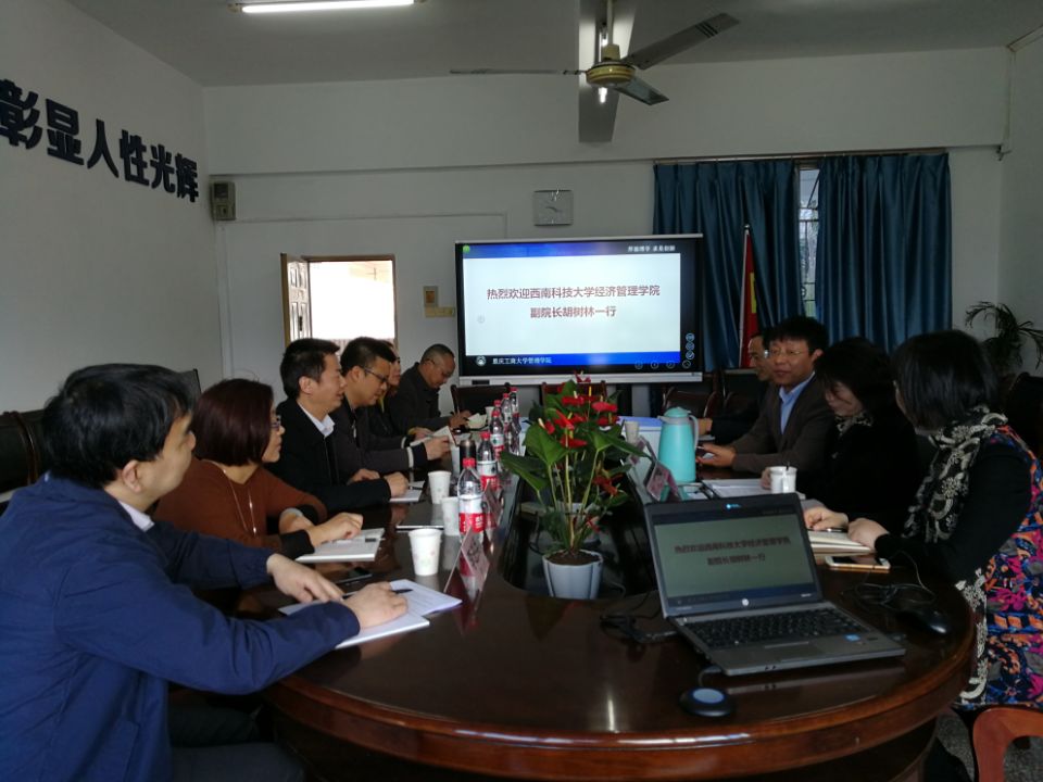 3月16日上午,西南科技大学经济管理学院副经理胡树林教授一行来公司调研交流团队建设和研究生教育工作。到访一行有西南科技大学社会科学处副处长张宇、研究生教育中心主任张霜、副主任曹好婷、工商管理学科点负责人李进兵、应用经济学学科点负责人王建洪。公司经理杨柏教授、副经理黄钟仪教授、人力资源系田喜洲教授、信息管理与信息系统系代春艳教授参加了此次会议。会议由管理学院副经理黄钟仪教授主持。