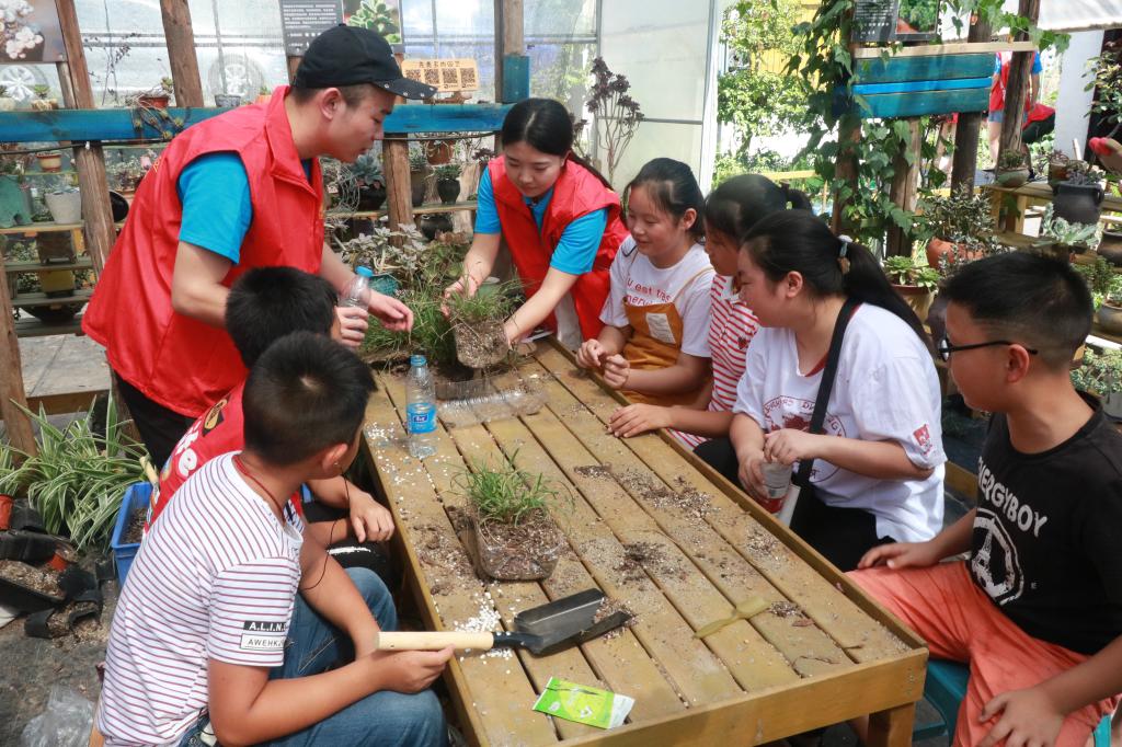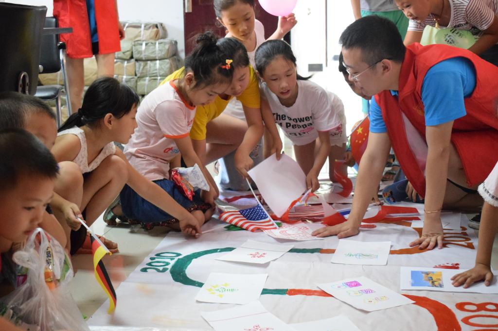 五天的志愿活动中,志愿者带领留守儿童走出教室,走进社会,用丰富多彩的暑期课堂引导孩子们学习和了解习近平新时代中国特色社会主义思想和党的十九大精神,将理论宣讲巧妙地融合到各类课程和游戏中,激发孩子们的学习热情和爱国情怀。老员工志愿者带领孩子们一同前往走马镇敬老院看望孤寡老人,在改革开放迎来四十周年之际,听老人们追忆四十年风雨历程,诉说四十年来国家和社会的发展变迁;一起学习走马古镇的国家级非物质文化遗产——曲艺故事,传承与发扬中华民族优秀传统文化,使中华民族的文化自信深深扎根于青少年心中;实地调研多肉植物园,为孩子们带去“水土流失”沙盘模拟实验,使孩子们懂得保护环境的重要性,以自身力量践行“绿水青山就是金山银山”的生态文明理念;趣味英语课的开展给孩子们带去了十九大的相关经典单词和部分重要观点,使十九大精神更加生动形象地走进孩子们心中;改革开放时间轴系列活动,更是通过通关游戏的方式使孩子们主动地了解改革开放以来新中国的变化,感受“一带一路”为世界带来的巨大影响,共同见证祖国的繁荣富强。