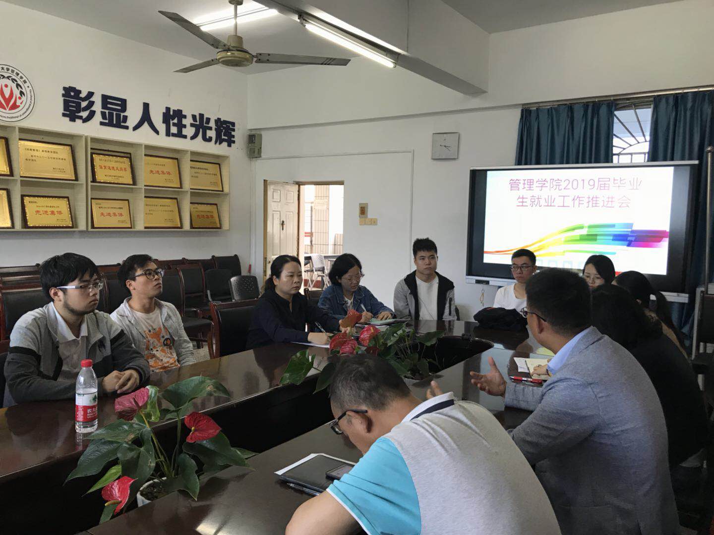 在毕业季来临之际,2019年5月29日下午3:00,管理学院在明德楼3021会议室召开了2019届毕业生就业工作推进会。管理学院分党委书记、副经理王建明,经理、分党委副书记杨柏,分党委副书记、纪委书记王静等领导出席了会议。学院就业工作负责人刘榴老师以及2019届毕业班辅导员聂树平老师、王瑛老师和各班毕业生代表参加了会议。