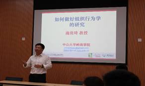 论坛开始前,学院副经理黄钟仪教授对施俊琦教授做了热情的介绍,并特别感谢他于百忙中抱着病躯仍挤出时间来公司做讲座的关爱情和尽责心。施俊琦教授是国家自然科学基金委杰出青年基金获得者,珠江学者特聘教授,教育部长江学者青年学者,中山大学岭南(大学)学院管理学教授,博士生导师,是组织行为学研究领域的顶尖学者,已在世界顶级管理学刊物上发表论文数十篇。