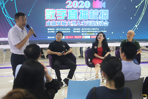 9月3日,2020数字直播校招暨成渝双城大型人才交流启动会在重庆市渝北区召开,本次人才交流启动会由重庆市经济信息委指导,重庆校企融合协会主办,重庆校企融合协会数字化人才专委会与重庆教培科技有限公司联合承办,重庆区块链公共服务平台协办,新华网及多家媒体机构提供技术支持。重庆市大中专就业指导服务中心主任余跃、重庆校企融合协会会长黄子华等领导出席会议并讲话,数字直播校招平台团队、市内多家企业及多所院校代表出席会议,公司成渝双城人才发展战略研究院的周莉教授和熊雪源博士参会交流。