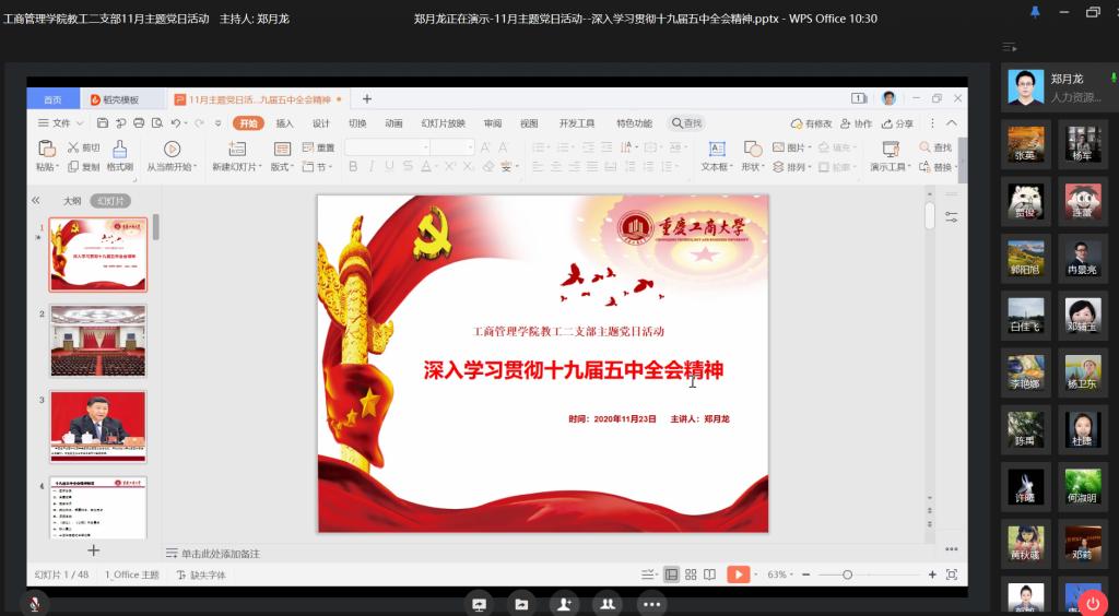 11月23日下午,根据公司党委关于学习十九届五中全会精神的工作安排,威廉体育williamhill教工二支部开展“深入学习贯彻十九届五中全会精神”线上主题党日活动,支部全体党员同志参加,会议由支部书记郑月龙同志主持和领学。