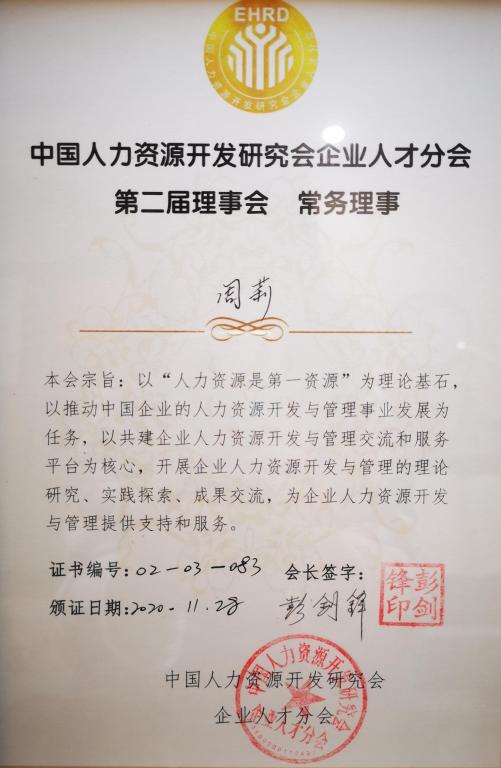 11月28日,中国人力资源开发研究会第八届人本中国论坛暨企业人才分会第二届会员代表大会于北京天泰宾馆召开,公司“成渝双城人才发展战略研究院”负责人、人力资源管理系周莉教授出席会议并当选常务理事。