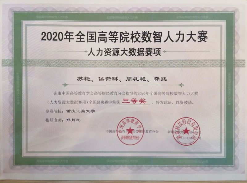 2020年11月17-21日,2020年全国高等院校数智人力大赛总决赛以“云竞赛”的新形式顺利展开。公司由员工成员苏艳、侯荷琳、周礼艳、龚彧,指导老师郑月龙代表参加本次比赛。该比赛通过新道DBE人力资源大数据分析实践教学平台,给予参赛成员具体的数据及案例背景,要求其依据以上内容撰写分析报告并完成最终答辩。员工参赛团体在郑月龙老师的悉心指导和带领下,一路披荆斩棘、攻坚克难,在未曾涉足过的新领域留下了属于自己的光鲜印记。