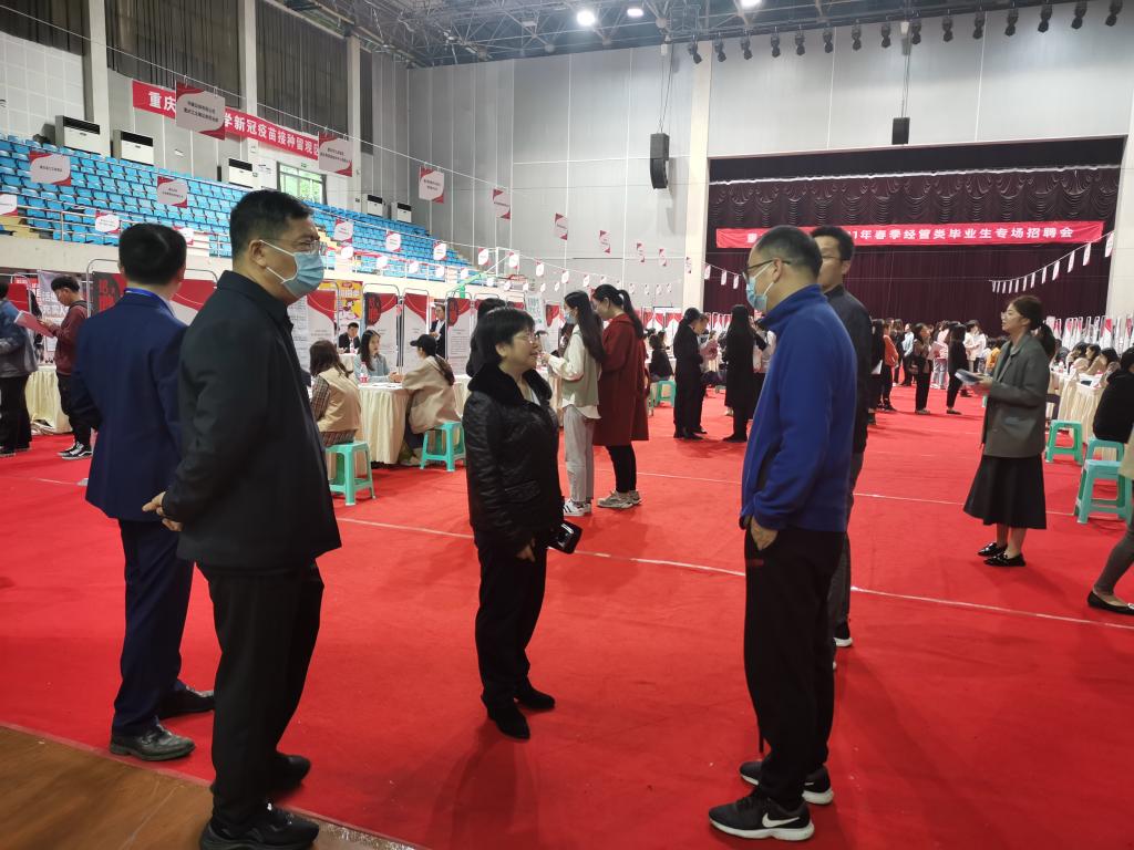 为了进一步推动公司毕业生就业工作,实现经管类毕业生高质量就业,由会计学院、威廉体育williamhill、管理科学与工程学院联合承办的威廉希尔williamhill官网2021届经管类毕业生专场招聘会于4月16日在体艺馆顺利举行。董事长孙芳城、重庆市注册会计师协会副秘书长、资产评估协会秘书长王琳、人才招聘处及学院相关负责人、专任教师、毕业班辅导员到现场指导员工就业。