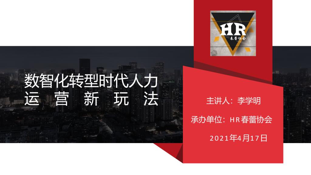 在经济不断转型升级的情形下,为帮助人力资源管理专业员工了解行业前沿资讯,及时把握人力资源管理新动态,2021年4月17日晚19:30—21:00,人力资源春蕾协会特邀具有20余年人力资源领域工作经验、曾任迅捷集团人力资源部长、安踏体育零售人力副总监、木九十人力资源总监、以纯集团人力负责人李学明专家为大家开展数智化转型时代人力运营新玩法主题讲座。