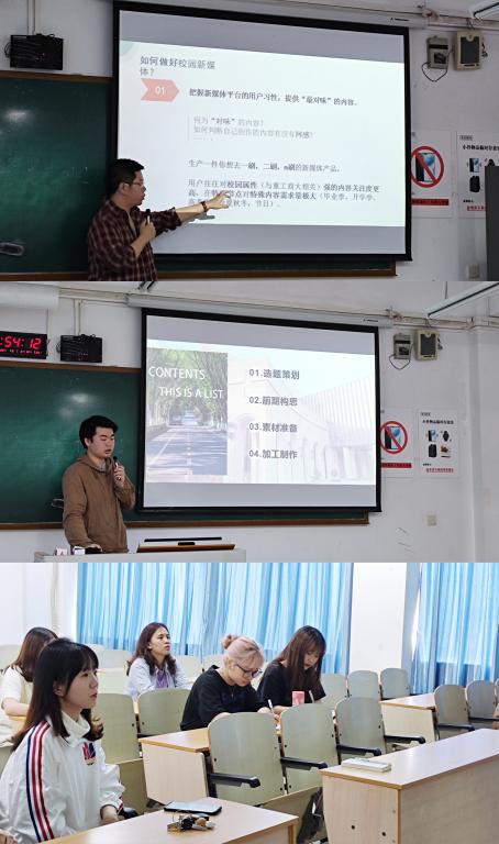 会议首先由肖哲为大家分享新媒体运营经验。肖哲从做新媒体是在做什么?为什么要做校园新媒体?如何做好高校新媒体三个方面进行了详细耐心的解说。希望融媒体中心的成员们能成为有责任、有脑洞、有耐心、有格局的“四有”校园“新”媒体人。接下来,刘俊从选题策划,前期构思,素材准备,加工制作四个方面分享了关于视频的制作,他提到,作为新媒体人,要有创造开发的精神,积极展示威廉体育williamhill的正面形象,辐射更多的受众群体。