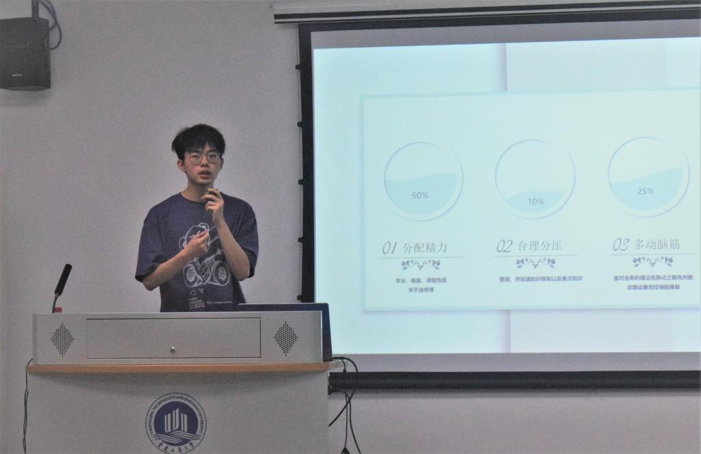 此次活动共四个主题,包括日常学习生活、创新创业比赛、体育锻炼和心理健康。在四位同学分享结束后设置了观众抽奖环节,会通过优先打进电话号码的方式获得礼品。夏梓洋首先介绍了自己日常学习的经验,学习讲究方法,要兼顾有效和实用,勿盲目跟风;郭家豪分享了他多次参加创新创业比赛的感悟,一个优秀的懂得合作的团队是制胜的法宝;之后廖若晴提出了她对于体育锻炼的见解,体育运动任重而道远,多去尝试找到自己真正热爱的,最重要是坚持下去;最后,包镇源带来有关心理健康知识的分享,心理教育与一个人的贡献、成就、成才关系重大,健康的心理对老员工有积极的引导作用。分享阶段大家都仔细倾听、认真思考,抽奖环节更是调动起每个人的热情。