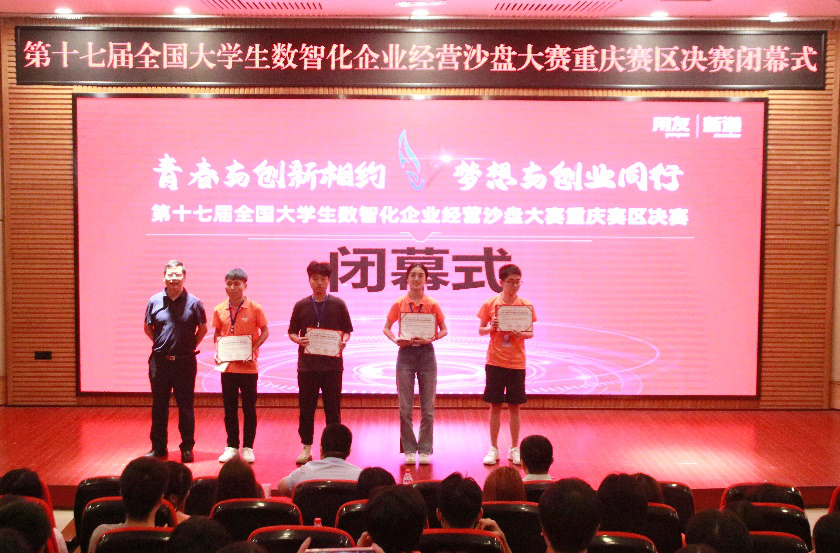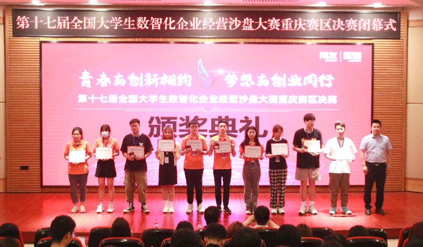 决赛中,由工商管理专业学子领衔组建的两支队伍从校内57支队伍中通过选拔赛,脱颖而出,代表威廉希尔williamhill官网参加重庆赛区决赛,经过为期2天激烈角逐,最终分别荣获一等奖(曹晓伟、刘乾琳、安鹏宇、包伟杰、王静妮)和三等奖(刘力、蔡静鑫、于国延、巫茜、陈婉琳),工商管理学子在比赛中的精神面貌赢得了主办方和技术支持方的一致好评。