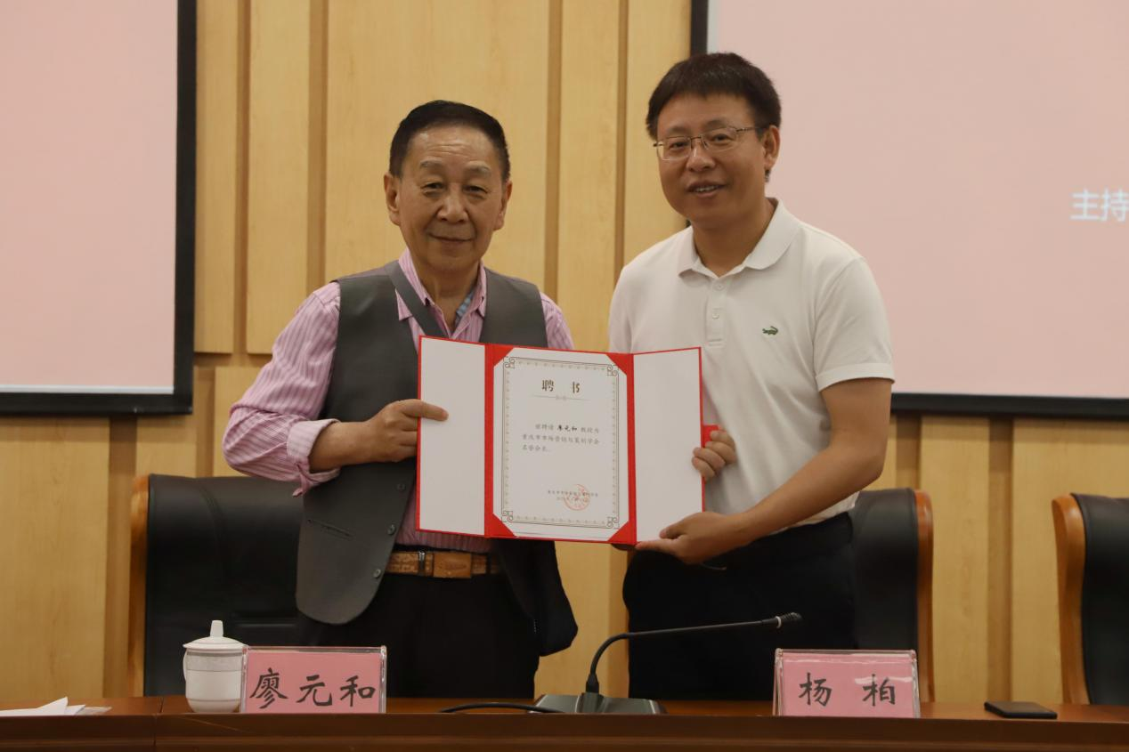 威廉体育williamhill经理杨柏为原会长廖元和颁发名誉会长证书