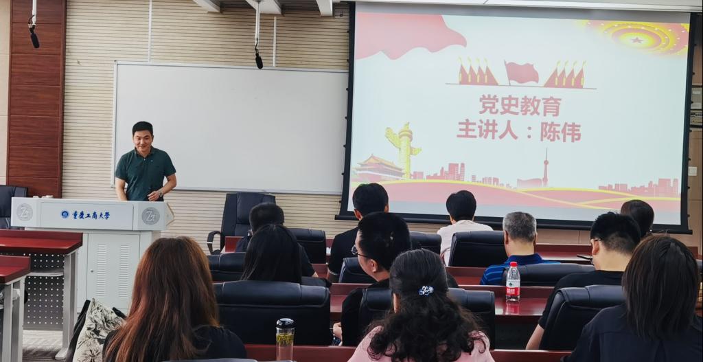 党课中,陈伟副经理以历届党代会的召开时间为切入点,归纳了共产党人的政治智慧,并强调要党在发展中始终以人民群众为中心,走群众路线。他强调学院对课程思政工作十分重视,尤其工商管理系教师要把专业教学和课程思政有机结合起来。希望各党员教师加强党史教育与专业教育相结合的意识,加强团队协同,更好的适应新形势下工商管理学科的育人工作。