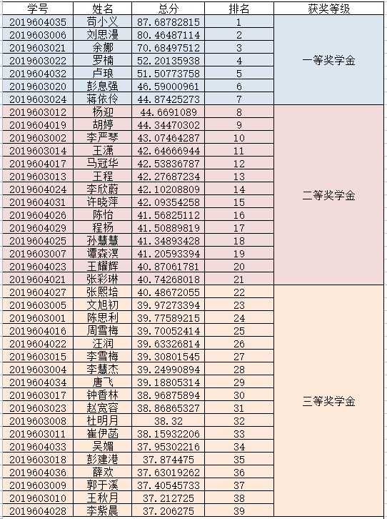 根据学校《关于做好2020-2021学年研究生国家奖学金、学业奖学金、单项奖学金申报评审工作的通知》,按照《威廉希尔williamhill官网研究生学业奖学金管理办法(暂行)》(重工商大〔2014〕141号)、《威廉希尔williamhill官网研究生单项奖学金管理办法(暂行)》(重工商大〔2014〕142号)相关规定,经员工本人申请,班级推荐,员工工作领导小组讨论,工商管理学院研究生奖学金评定领导小组审核,评选出2020-2021学年学业奖学金及单项奖学金拟推选研究生,公示如下: