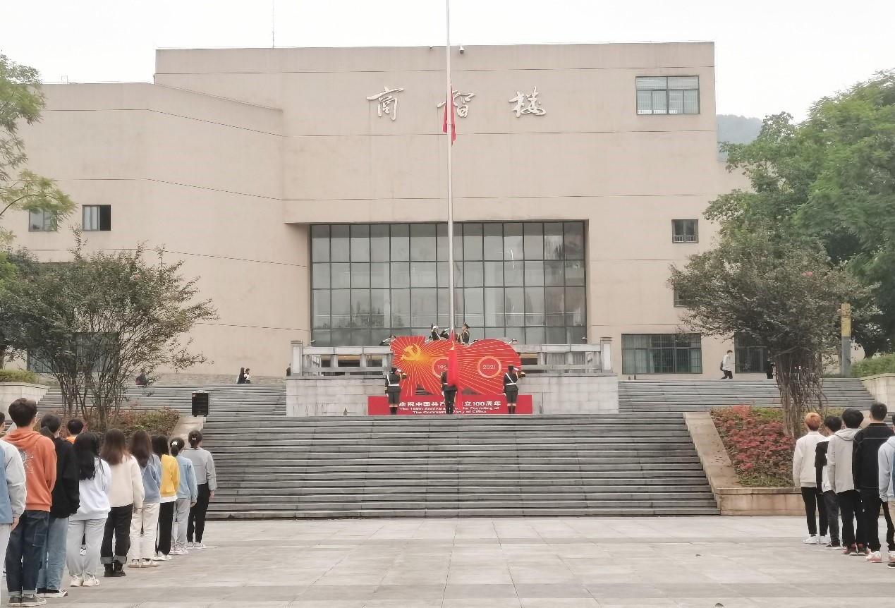 在坚定的眼神和飘扬的红旗中,升旗仪式圆满落幕。回顾一百年风雨兼程,眺望迎风飘扬的五星红旗,它承载了中国共产党栉风沐雨、筚路蓝缕的困难与光辉,希望同学们守好初心,担好使命,永远跟党走,奋进新时代。