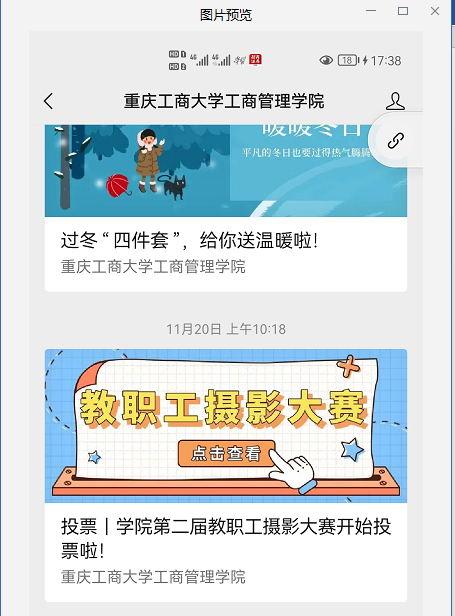 经学院工会和学院融媒体中心线下评审,以及通过学院公众号线上投票,共有85份作品获奖,其中《国庆一角》等15份作品获一等奖,《静·谧》等25份作品获二等奖,《乡愁记忆中的小桥》等45份作品获三等奖。