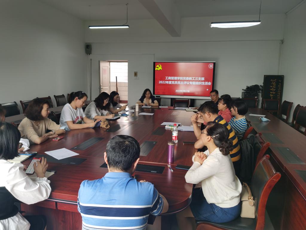 2022年3月17日下午14:00,工商管理管理学院教工三支部在明德楼3021会议室召开了3月主题党日活动暨组织生活会。本次会议由教工三支部支部书记郑淞月同志主持。