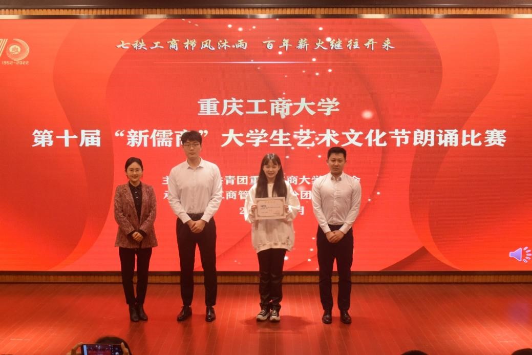 伴着婉转的旋律,《我们正年轻》娓娓道来;和着铿锵有力的节拍,《我的墓碑》轻声启颂;诵《同心向党,奔赴远方》时声情并茂;歌颂赞扬党的精神;“从海棠溪到龙脊山,从含宏广场到博智长廊,这座学府孕育着无数恣意昂扬的沛涛旭枫”是工商学子对工商大学的熟悉与热爱;“七十年来的教育事业,七十年来的桃李满园,重庆工商大恪守真理,只为理想信念。”工商学子用言语歌颂,用文字点缀,用激情挥洒,为威廉希尔williamhill官网七十年华诞献礼。经过角逐,金融学院《我的墓碑》获得金奖,艺术学院《这条路》和通识学院《同心向党,奔赴远方》获得银奖,威廉体育williamhill《我们正年轻》、经济学院《这条路》、文学与新闻学院《记得,我们的七十年》获得铜奖。