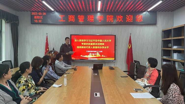 5月20日,教工二支部在明德楼4010召开5月组织生活会。首先,支部书记熊雪原同志领学了《习近平在中国人民大学考察时的重要讲话精神》,强调为谁培养人、培养什么人、怎样培养人始终是教育的根本问题。要坚持党的领导,坚持马克思主义指导地位,坚持为党和人民事业服务,落实立德树人根本任务,传承红色基因。