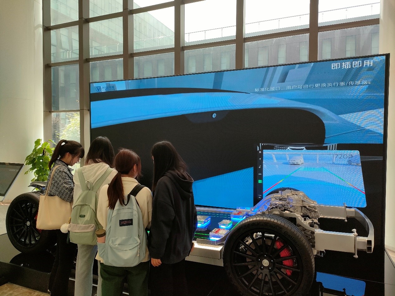 随后,师生来到展馆近距离观摩体验长安汽车自主研发的多项汽车科技前沿成果。