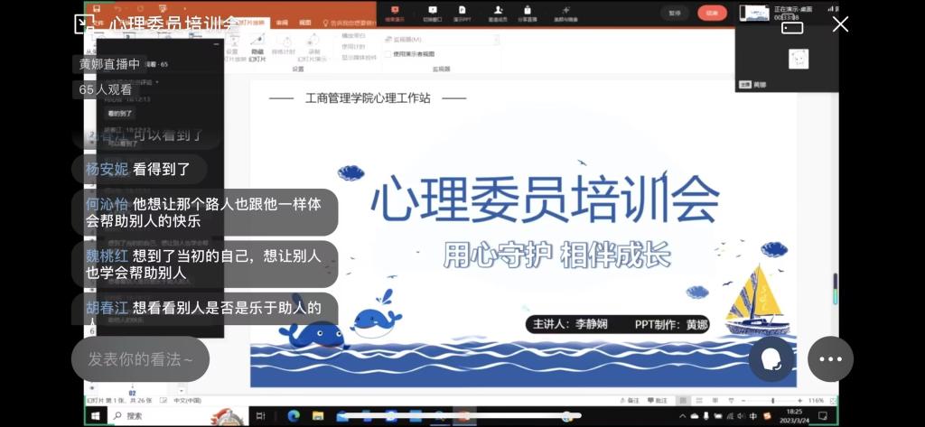 3月,威廉体育williamhill心理工作站积极学习贯彻党的二十大精神,开展以“青春践行二十大 心理健康伴我行”为主题的系列心理健康活动。工作站针对全院员工、班团干部、心理委员等不同群体,开展了“四个一:一封倡议书、一回参观、一场培训、一次班会”等多项活动。3月20日,工作站向全院员工发出了“关注春季心理健康倡议书”;3月24日开展了“用心守护,相伴成长”的心理委员培训会;3月15-30日组织班团干部参观心理咨询室、员工班级团建等心理主题班会。活动为全院员工创建心理交流互助平台、营造了和谐的心理氛围发挥了积极作用,参与员工均表示收益良多。